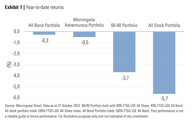 The FTSE/JSE All Share Index has seen a close to 6% drop year-to-date (as of 31 October 2022) in rand, and local bonds have also generated negative performance. Globally, bonds are generating some of their deepest losses in decades.