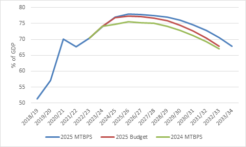 The first is the economic assumptions that underpin this budgeting process. Real (excluding inflation) and nominal (including inflation) economic growth rates were revised lower, given global headwinds and the failure of fixed investment spending to grow as expected. Instead, fixed investment spending will decline this year, before starting recovery next year. Real gross domestic product (GDP) growth of only 1.2% is expected in 2025, though this still represents double the rate achieved in 2024. It is projected to rise to 2% in 2028. These forecasts are broadly in line with the consensus of private sector economists. In other words, while 2025 is disappointing relative to earlier expectations, it already marks an improvement from previous years, and it should continue rising over the medium term.