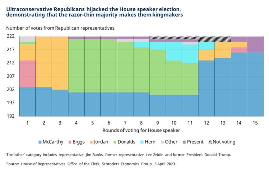In its opening salvo, the Republican’s 45-strong Freedom Caucus has demanded that discretionary spending be capped at 2022 levels for the next 10 years. Such a hardline ideological position puts it on a collision course with the Democrats and their more moderate Republican colleagues. Unless some middle ground can be found, there is a risk the debt ceiling might not be raised.