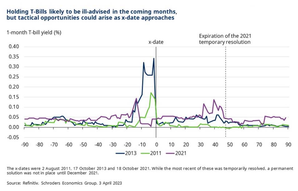 These ought to rally as concerns about a possible US default boil over, at which stage some investors may want to take profit and pursue tactical opportunities. For instance, T-Bills maturing not long after the x-date would likely be unloved, as occurred in 2011 and 2013, presenting an attractive prospect for those willing to bet that Congress will manage to raise the debt ceiling in time.